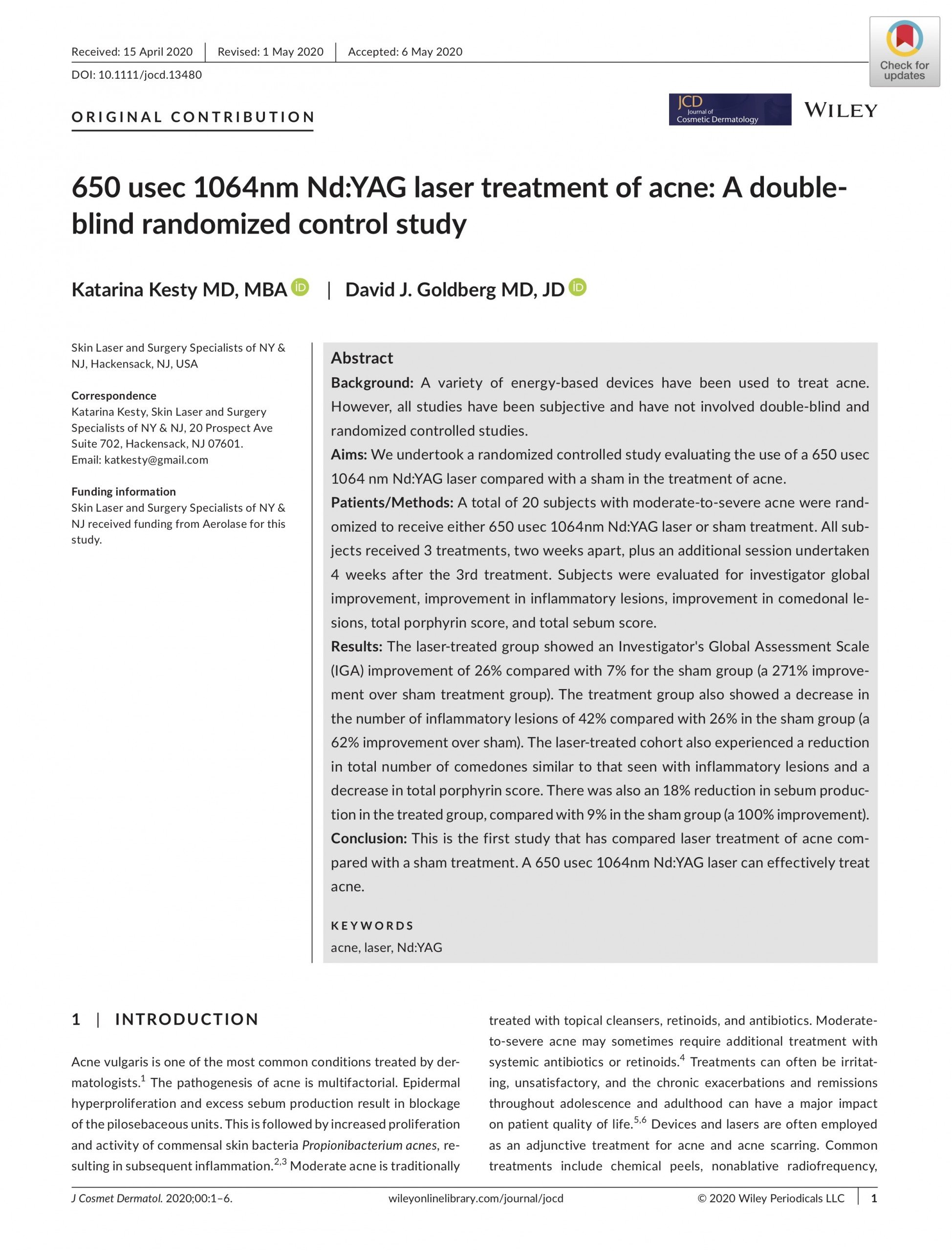 Journal of Cosmetic Dermatology, Juli 2020 David J. Goldberg MD, JD; Katarina Kesty MD, MBA; Hautlaser- und Chirurgiespezialisten von NY & NJ, Hackensack, NJ, USA