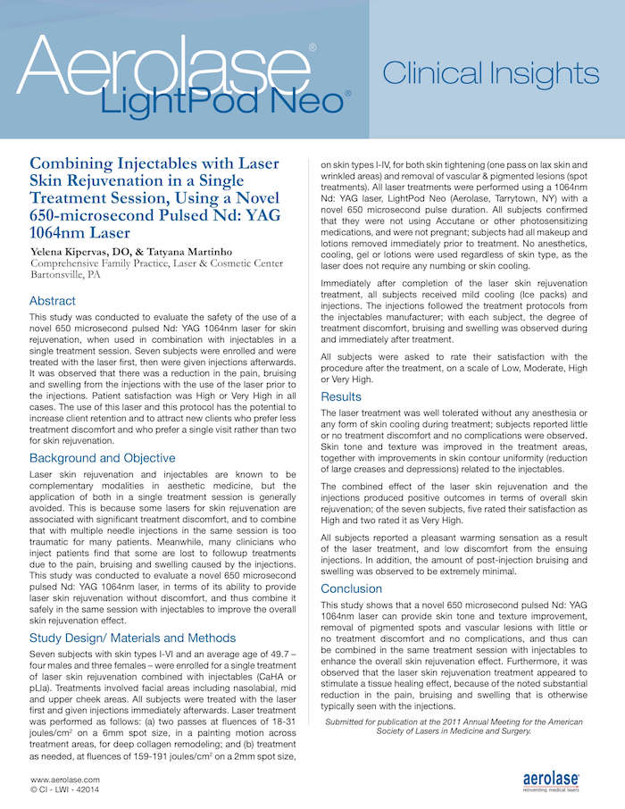Yelena Kipervas, DO, Familienmedizin, Bartonsville, PA Diese Studie wurde durchgeführt, um die Verwendung einer einzigen Lasermodalität zur gleichzeitigen Behandlung von zwei Hauterkrankungen zu bewerten: Beseitigung