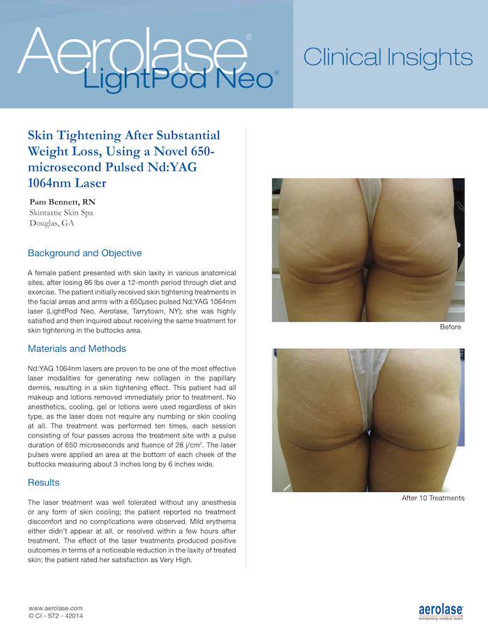 Fran Cook-Bolden, MD, Dermatologie, New York, NY Journal of Drugs in Dermatology, Dezember 2011 Der Nd:YAG-1064-nm-Laser hat sich zum Goldstandard für die sichere Behandlung aller Hauttypen und speziell dunkler Haut entwickelt. Die 1064-nm-Lasertechnologien mit ultralanger Pulsdauer erfordern im Allgemeinen Anästhetika sowie eine Hautkühlung, damit die Patienten die Behandlung vertragen. Die Verwendung von Anästhetika und Gelen kann einen erheblichen Zeit- und Kostenaufwand sowie Schwierigkeiten verursachen. Die Entwicklung einer neuen 1064-nm-Lasertechnologie mit einer einzigartigen Pulsdauer von 0,65 ms ermöglicht jetzt eine nahezu schmerzfreie Behandlung von dunkler Haut; Hautkühlung, Anästhetika und Hautkontakt mit dem Handstück während der Behandlung sind nicht erforderlich. Diese einzigartig sanfte, hygienische und wirksame Laserbehandlung für Patienten mit dunkler Haut kann die Wahrscheinlichkeit erhöhen, dass sie zu Folgebehandlungen zurückkehren und die Behandlung weiterempfehlen.