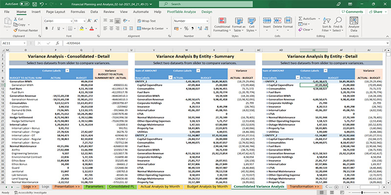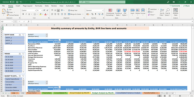 - Perform budget variance analysis on the actual data & forecast data with an easy switch between different versions